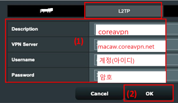 | CoreaVPN L2TP Client °øÀ¯±â ¼³Á¤